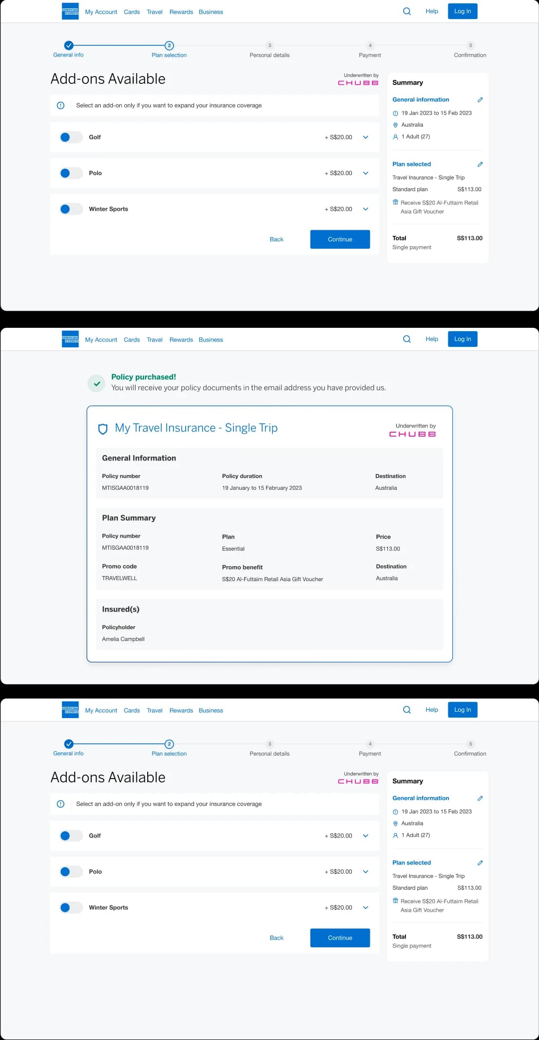 With travel insurance sales diminishing, American Express brought us on to take a closer look at the problem. Through a fast and thorough discovery phase, we found the issue, fixed it, and provided a design system that could be used by other teams to increase sales.